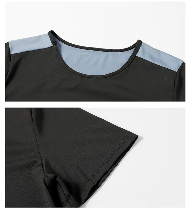Stay supported and stylish with this nylon-spandex top, designed with a sleek patchwork pattern for a modern edge. Featuring short sleeve top, full sleeve jacket, tights, shorts and sports bra. This is a slim fit for smaller ladies! Featuring breathable, quick-dry, and resistant to pilling, shrinking, and wrinkles— bound to keep you comfortable through every stretch and move.